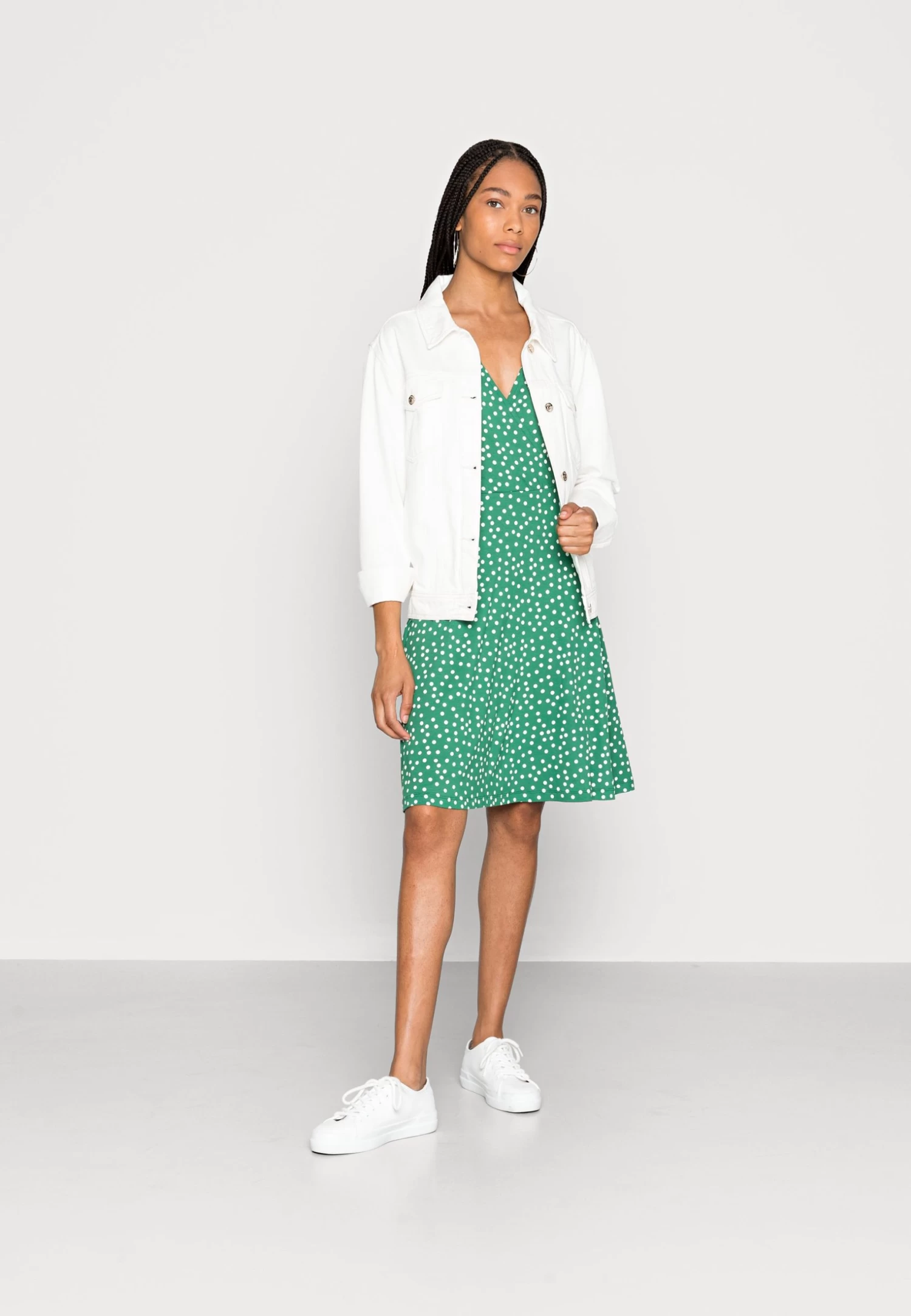 Anna Field Jersey Dress – Green/White